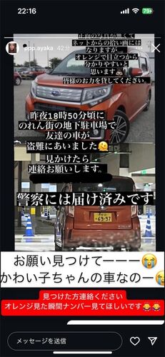 拡散のほどよろしくお願いいたします。 ■車両情報 車種 スズキ ステラ ボディカラー オレンジ ナンバー 沖縄 581 み 6997 ※付け替えられている可能性もあります 特徴 ■被害日時 2024年8月27日 ■盗難場所 沖縄県那覇市 ■連絡先 ・情報元Xアカウント ・那覇警…
