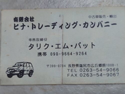 不審な外国人による名刺の情報が入りました。近隣の方は警戒をしてください。 ■活動場所 長野県南信地域 ■日時 2024年12月21日 ■チラシの情報 会社名 ヒナ・トレーディング・カンパニー 住所 〒399-0704 長野県塩尻市広丘郷原1008-1 氏名 タリク・エム・バッ…