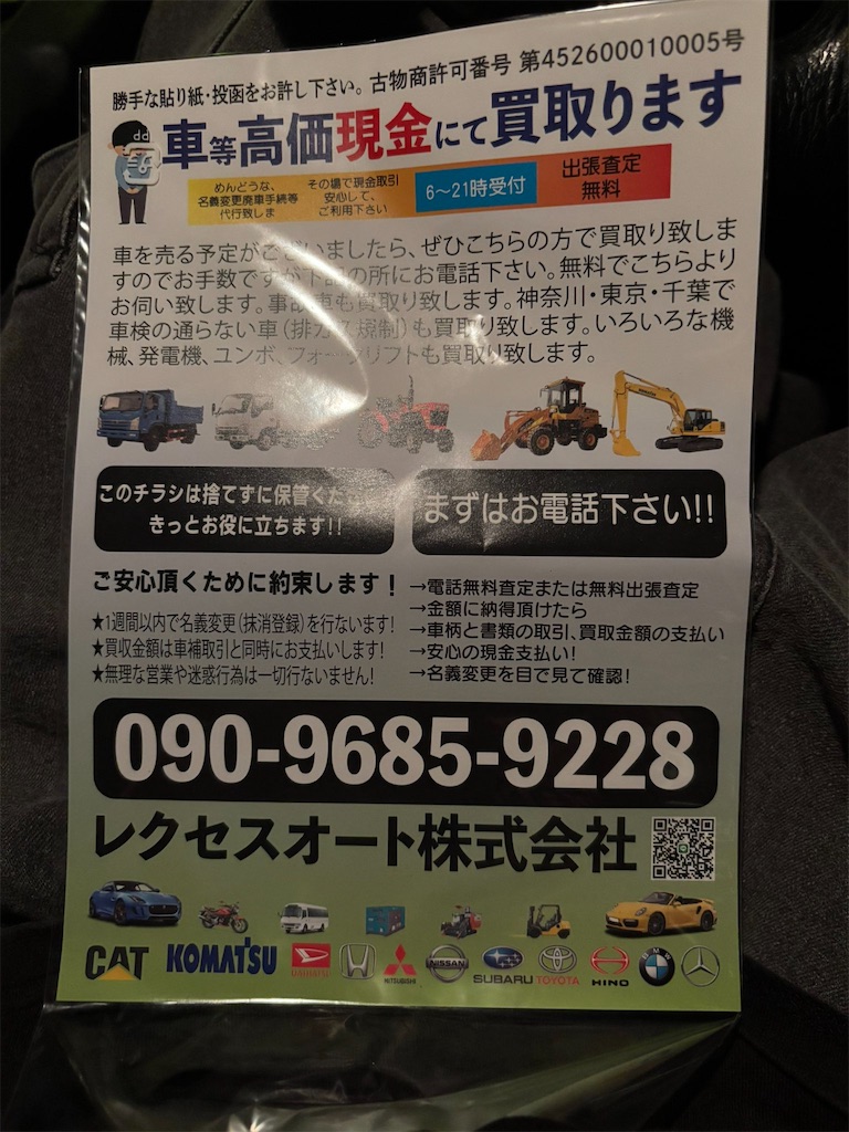 不審な外国人によるチラシの情報が入りました。近隣の方は警戒をしてください。