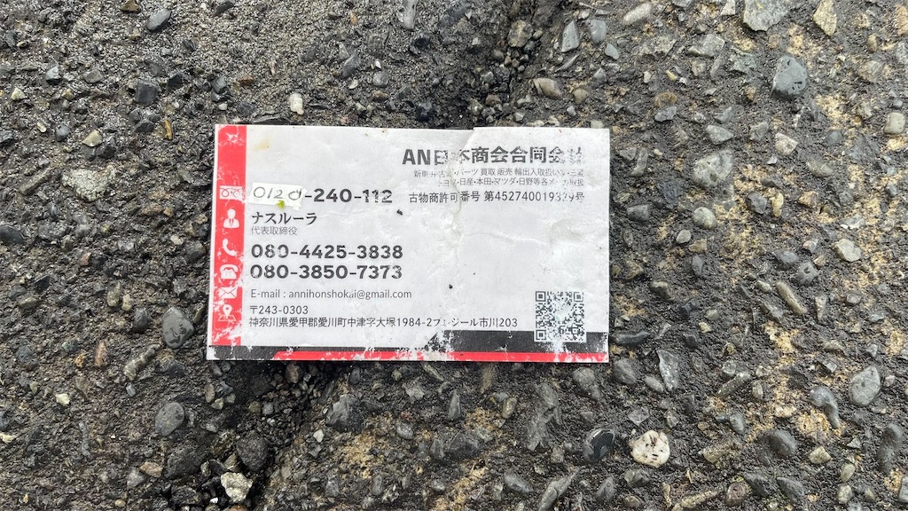 不審な外国人による名刺の情報が入りました。窃盗団の可能性がありますので近隣の方は警戒してください。