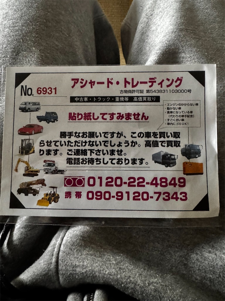 不審な外国人によるチラシの情報が入りました。窃盗団の可能性がありますので近隣の方は警戒してください。